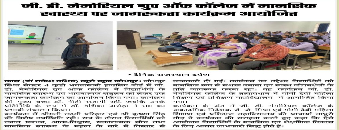 Read MoreGrand Organization of College Parliament Program at GD Memorial Group of College Jodhpur. On the ...