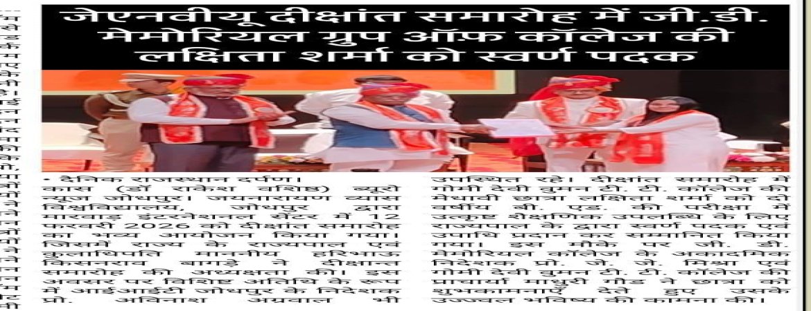 read MoreKAS (Dr. Rakesh Vashishtha) Bureau News Jodhpur. Jai Narayan Vyas University, Jodhpur, held a grand ...