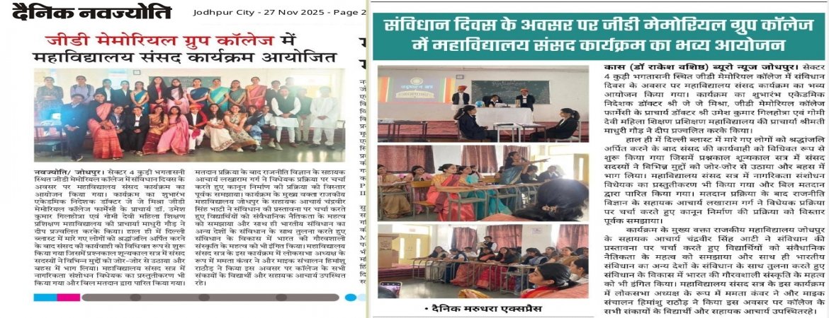Jodhpur Sector 4 Kudi Bhagatsani On the occasion of Constitution Day, a college parliament progra...